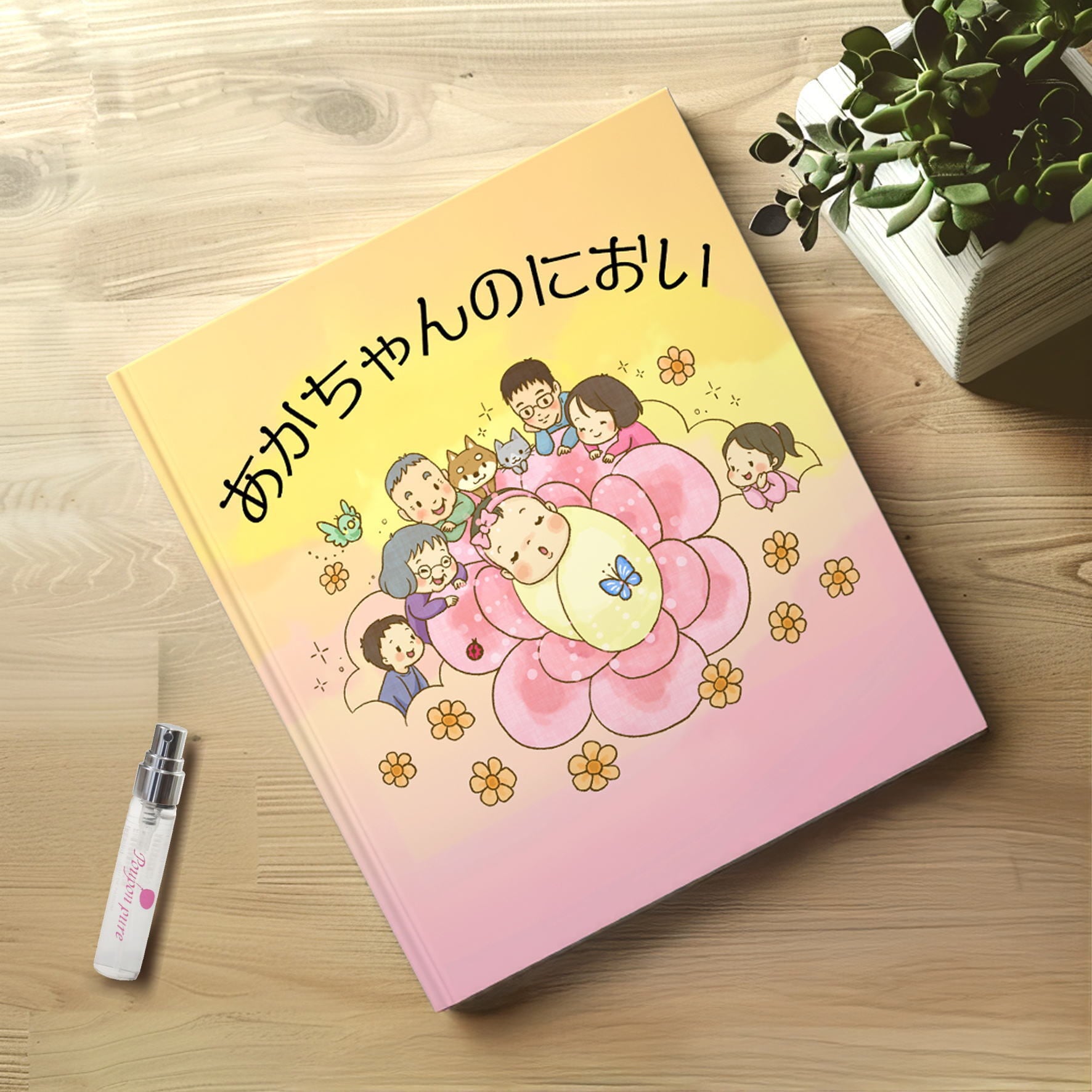 家族みんなが赤ちゃんのにおいに気がついて一緒になって楽しむ様子を、やさしいイラストで描いて絵本に仕上げました。