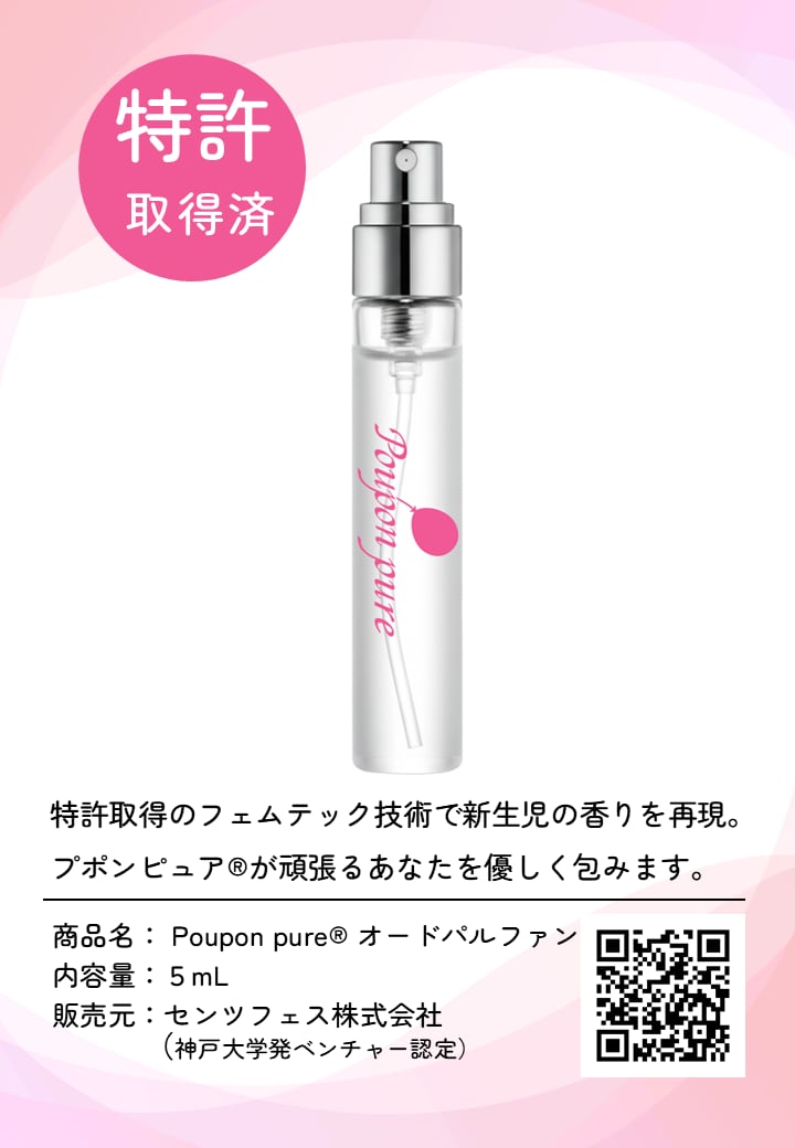 本商品に使用した香料は、香料組成物として日本、米国、英国、EUで特許登録済(特許第7659253号)。赤ちゃんの頭の匂いの組成をそのまま再現した香料でウォーターベースの香水にしています。